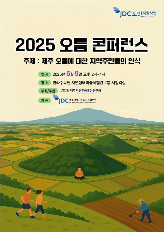이번 행사는 제주국제자유도시개발센터(JDC) 도민지원사업으로 마련했다. 행사에선 제주 오름에 대한 지역주민들의 인식을 주제로 한 설문조사 결과도 발표한다.