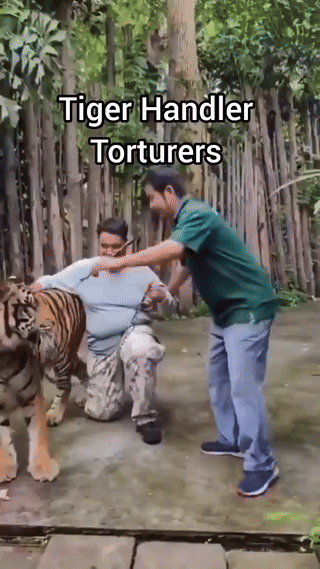 지난달 31일(현지시각) 소셜미디어 엑스(X)에 게시된 영상에 따르면 한 관광객이 사슬을 잡고 호랑이와 함께 걷던 중 갑작스럽게 호랑이가 공격하는 장면이 포착됐다.