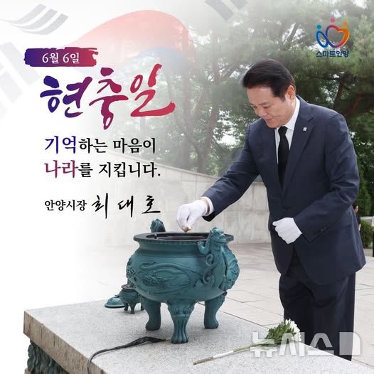 [안양=뉴시스] 박석희 기자 = 최대호 경기 안양시장이 6일 제70회 현충일 맞아 나라를 위해 희생한 순국선열과 전몰한 장병들의 충열을 기리고 얼을 위로하기 위한 메시지를 냈다.
