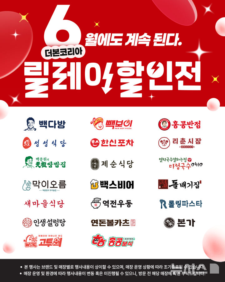 이번 릴레이 할인 행사는 더본코리아가 발표한 300억원 규모 상생 지원책의 일환이다. 본사가 할인과 홍보 비용을 전액 지원한다.