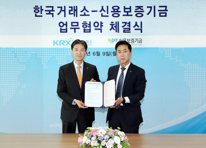[서울=뉴시스] 강수윤 기자 = 한국거래소는 9일 신용보증기금과 코스닥 기술특례상장 전문평가에 관한 MOU(업무협약)를 체결했다고 밝혔다.