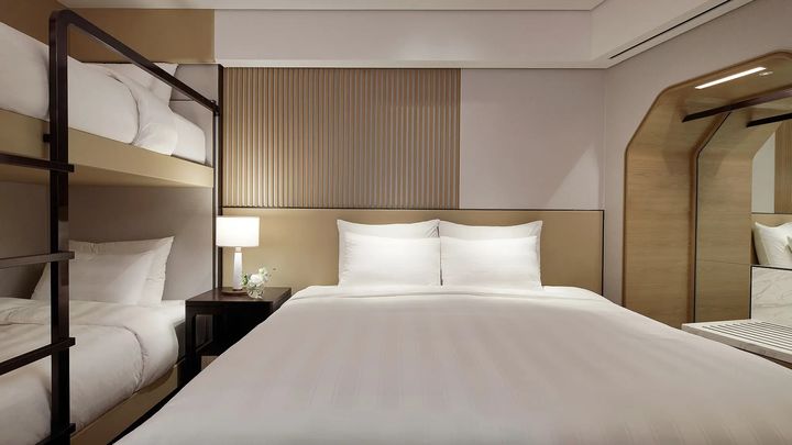 롯데호텔 월드에서는 패밀리 룸과 갈비탕, 미역국, 핫케이크, 커피로 구성된 인룸다이닝 패밀리 모닝 세트(3인), 마카롱 웰컴 커티시 등을 이용 할 수 있다.