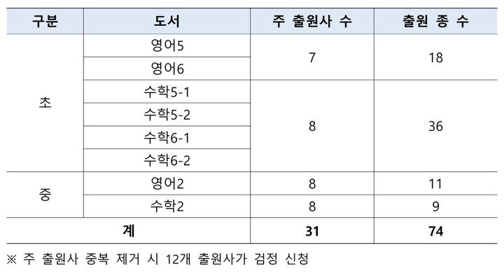 이번 검정 절차는 내년 초등학교 5·6학년, 중학교 2학년, 고등학교 2학년으로의 확대를 앞두고 진행 중이다. 고등학교 공통수학 및 공통영어는 작년에 검증된 교과서를 올해부터 사용하게 돼 검정 대상에서 제외됐다.
