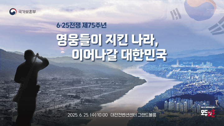 [서울=뉴시스] 옥승욱 기자 = 국가보훈부는 25일 오전 10시 대전 컨벤션센터에서 ‘6·25전쟁 제75주년 행사’를 거행한다고 24일 밝혔다.
