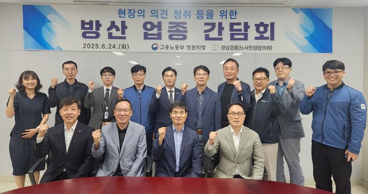 [창원=뉴시스]홍정명 기자 = 고용노동부 창원지청은 24일 오후 청사 1층 중회의실에서 경남경영자총협회 노사민정 사무국과 함께 방산업종 7개사 대표이사 및 임원과 간담회를 개최했다고 밝혔다.