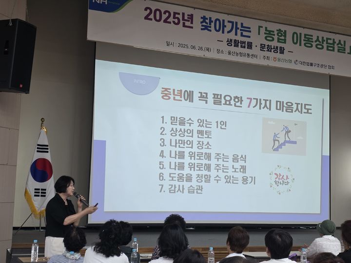 [울산=뉴시스] 박수지 기자 = 울산농협은 26일 울산농협유통센터에서 대한법률구조공단과 함께 여성 농업인을 위한 '울산농협 이동상담실'을 개최했다.
