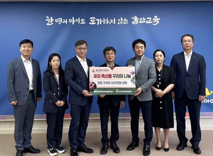 울산농협노조는 26일 시교육청에서 저소득 가정을 위해 총 500만원 상당의 '우리 축산물 꾸러미' 100세트를 전달했다.