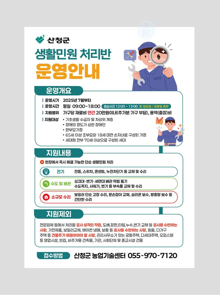 내달 본격 운영에 들어가는 생활민원처리반은 전기 설비, 수도·배관, 소규모 수리 등 불편 사항을 해결한다.