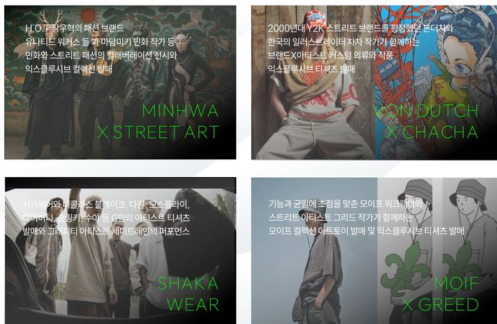 미국 LA 스트리트 브랜드 ‘샤카웨어’는 어반브레이크 랩 소속 작가 6인(니콜라스 블레이크, 모스플라이, 헤이허니, 다원, 슬링키, 수아)과 협업한 티셔츠 라인을 한정 출시하며, 본더치×차차, 모이프×그리드 등의 이색 콜라보 제품도 판매된다.