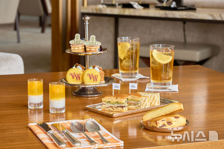 애프터눈 티는 '망고 마카롱'과 '애플망고 요거트 젤리', '오렌지와 살구크림치즈 샌드위치' 등 총 8가지 디저트로 구성돼 있다. 비비안 웨스트우드의 색감과 영감을 여름 시즌에 맞춰 망고와 패션후르츠, 살구를 활용해 '노란색'으로 표현한 점이 특징이다.