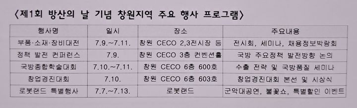 [창원=뉴시스]홍정명 기자 = 경남도는 '제1회 방위산업의 날' 기념 전시회, 학술대회 등 다양한 방산 프로그램이 오는 9일부터 13일까지 창원에서 열린다고 7일 밝혔다.