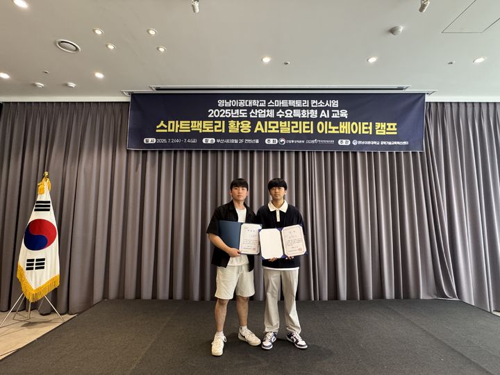 두 학생은 팀 프로젝트를 통해 스마트팩토리 환경에 적합한 AI 기반 모빌리티 솔루션을 제안해 기술의 완성도와 실현 가능성 측면에서 높은 평가를 받았다.