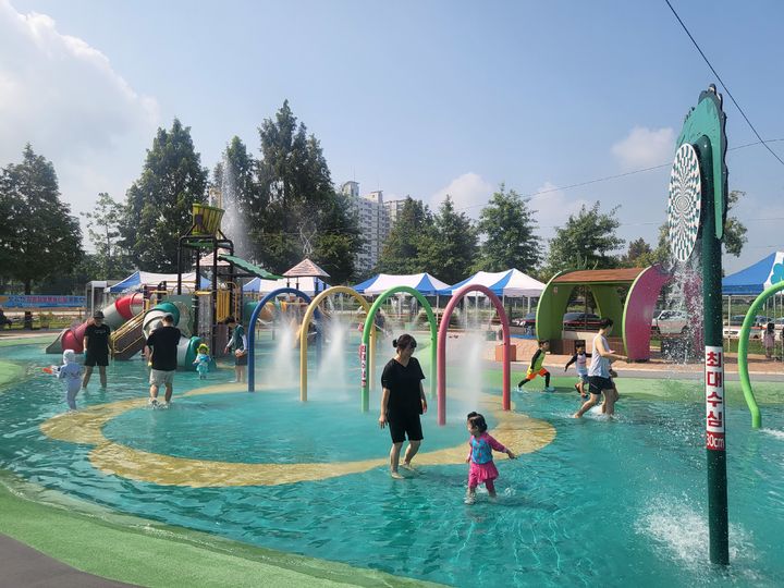 물놀이장에는 미끄럼틀형 놀이기구를 포함한 10여 종의 물놀이시설과 그늘막, 벤치, 퍼걸러 등을 마련했다.