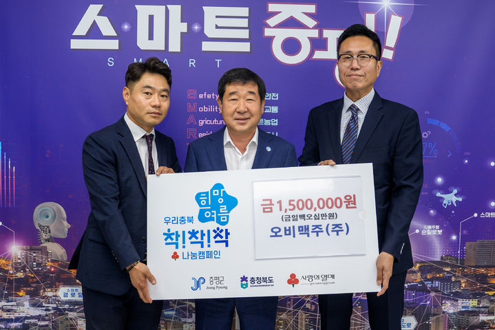 오비맥주 청주지점은 2012년부터 매년 군에 기부금을 전달하며 꾸준한 기부활동을 펼쳤다.