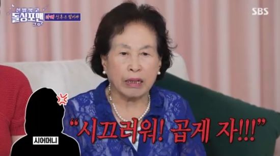 전원주는 15일 방송한 SBS TV 예능프로그램 '신발 벗고 돌싱포맨'에서 이렇게 말하며 "시어머니가 남편과 나 사이에서 잤다. 나를 감시했다"고 말했다.
