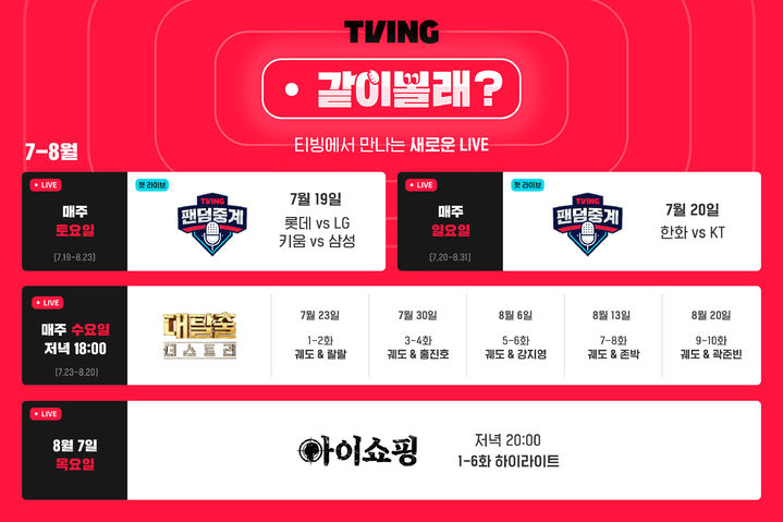 티빙, 19일부터 실시간 소통하는 신규 서비스 시작