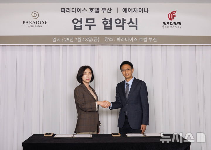 [서울=뉴시스] 변해정 기자 = 파라다이스 호텔 부산은 중국 국적사인 에어차이나와 지역경제 및 관광산업 활성화를 위한 업무협약을 체결했다고 21일 밝혔다.