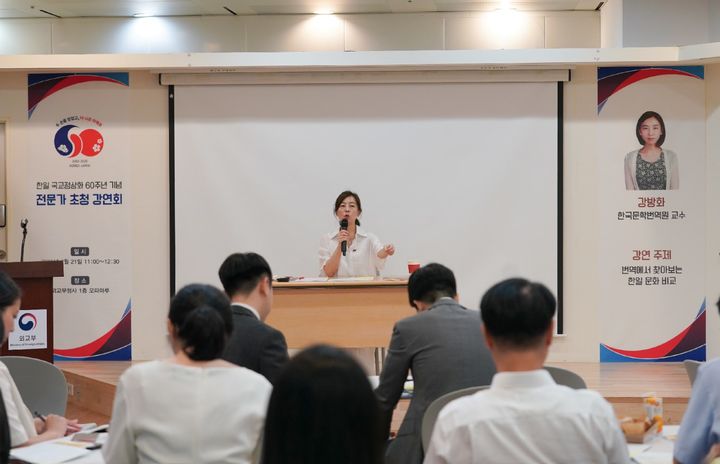 [서울=뉴시스] 유자비 기자 = 외교부는 한일 국교정상화 60주년 기념사업의 일환으로 21일 '번역에서 찾아보는 한일 문화 비교'를 주제로 공개 강연회를 개최했다고 밝혔다.