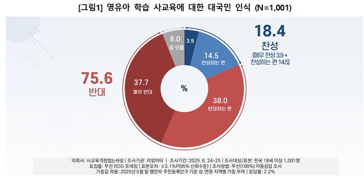 조사결과 영유아 기관 원장과 교사의 76.1%(매우 반대 34.3%, 반대 41.8%)가 영유아 교과 학습 사교육 참여에 '반대'하며, '찬성'은 23.9%에 불과했다.