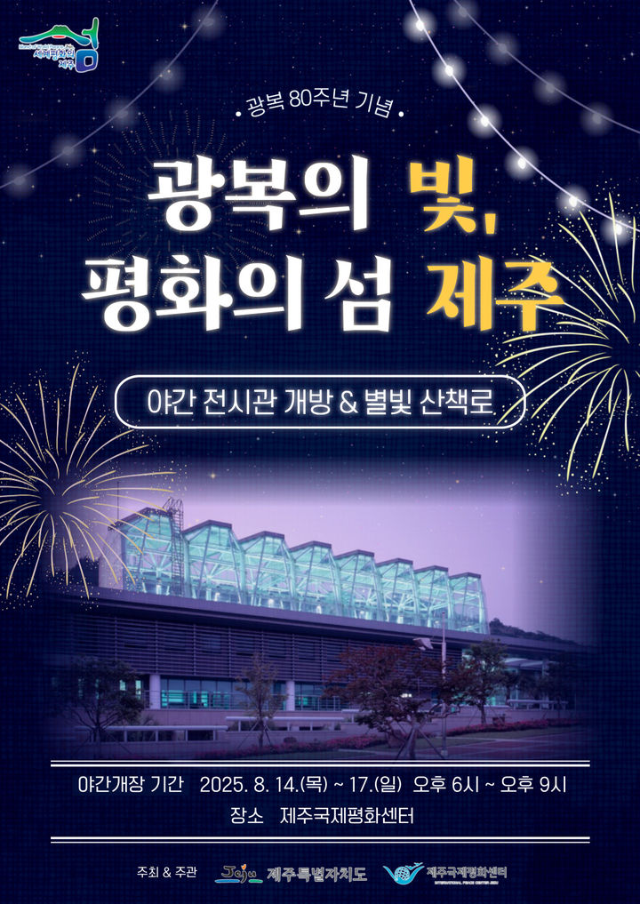 [제주=뉴시스] 우장호 기자 = 제주도가 광복 80주년을 맞아 제주국제평화센터에서 야간 특별개장 행사를 운영한다고 10일 밝혔다.