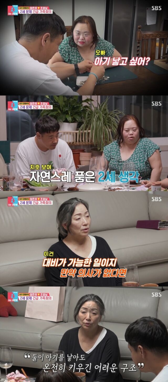 정은혜 어머니는 육아를 걱정했다. "아이를 낳으면 잘 돌보고 키울 수 있겠냐"고 했다. 정은혜는 다운증후군이고, 남편 조영남은 지적장애인이다.