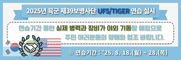 [창원=뉴시스] 김기진 기자 = 육군 제39보병사단은 오는 18일부터 28일까지 경상남도 주요 시(市)·군(郡)에서 2025년 을지훈련(UFS/TIGER )연습을 실시한다고 17일 밝혔다.