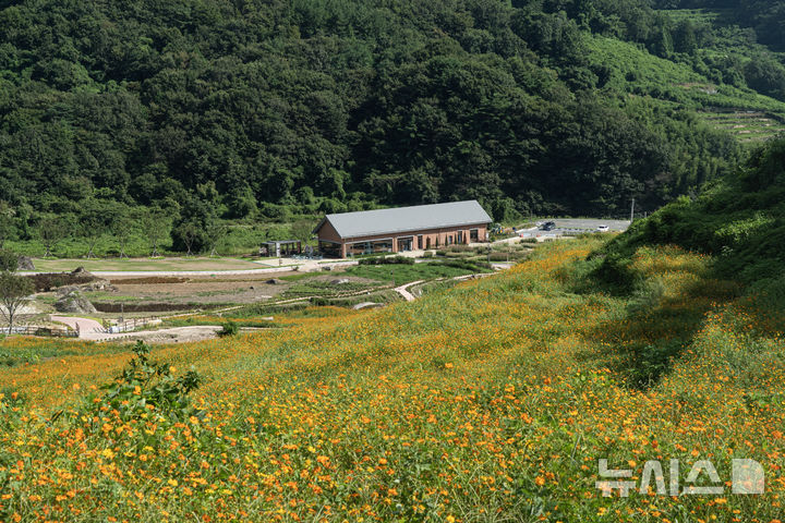 [남해=뉴시스] 차용현 기자 = 5일 경남 남해군 상주면 두모마을 인근에 위치한 '파라다랑스'에 주황색 코스모스가 만개해 가을의 시작을 알리고 있다.