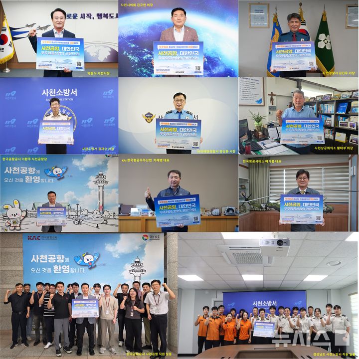 캠페인에 참여한 기관장들은 “지역의 미래와 대한민국 우주항공산업 발전을 위해 사천공항의 국제공항 승격이 반드시 필요하다”고 한 목소리로 강조하며, 도민 모두의 뜻이 하나로 모아지길 당부했다.