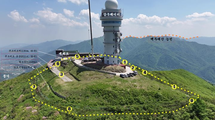 [단양=뉴시스] 이병찬 기자 = 소백산 정상 제2 연화봉 일대 미관을 해쳐 온 철조망과 콘크리트 포장이 40년 만에 철거됐다.