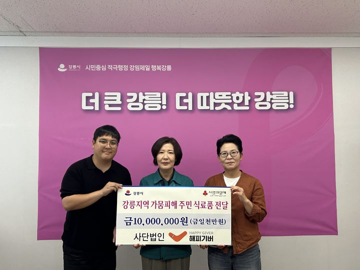 ㈔해피기버(이사장 권태일)는 22일 강릉시에 1000만원 상당의 즉석식품을 전달하며 강릉지역 가뭄 피해 주민 돕기에 나섰다.