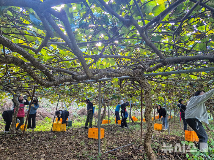 [남해=뉴시스] 차용현 기자 = 경남도립남해대학은 교직원 16명이 지난 4일 오후 남해군 관내 참다래 농가를 찾아 농촌일손돕기 활동을 실시했다고 5일 밝혔다.