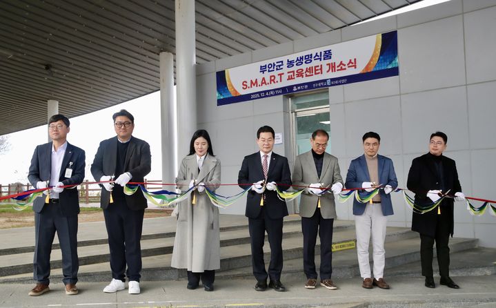 [부안=뉴시스]고석중 기자 = 전북자치도 부안군이 4일 하서면 백련리 새만금잼버리 경관쉼터에서 '부안군 농생명식품 S.M.A.R.T 교육센터' 개소식을 가졌다.