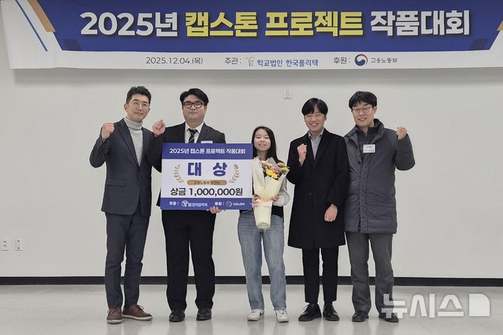 [인천=뉴시스] 이루비 기자 = 한국폴리텍대학 인천캠퍼스는 최근 개최된 올해 '캡스톤 프로젝트 작품대회'에서 메카트로닉스공학과 필메모리(Fill Memory, 임성준·조여진·정상준 학생)팀이 대상(고용노동부 장관상)을 받았다고 10일 밝혔다.