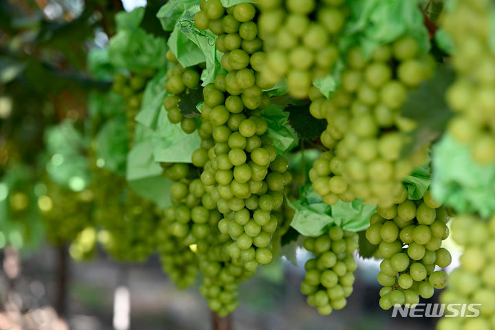 [옥천=뉴시스]연종영 기자 = 충북 옥천군은 샤인머스캣 가격 하락으로 어려움을 겪는 농가에 농축산물 가격안정 기금을 지원한다고 11일 밝혔다.