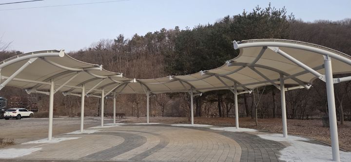 7000만원을 들여 테플론(PTFE) 소재 그늘막 휴게공간을 만들었다.
